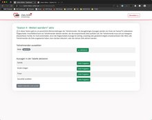 Hier wird zunächst wie bei den vorherigen Sationen die Teilnehmenden nacheinander mit einem klick auf den rechts neben dem Namen befindeten Button "aktiivieren" die Bedienung für die Teilnehmenden freigegeben.