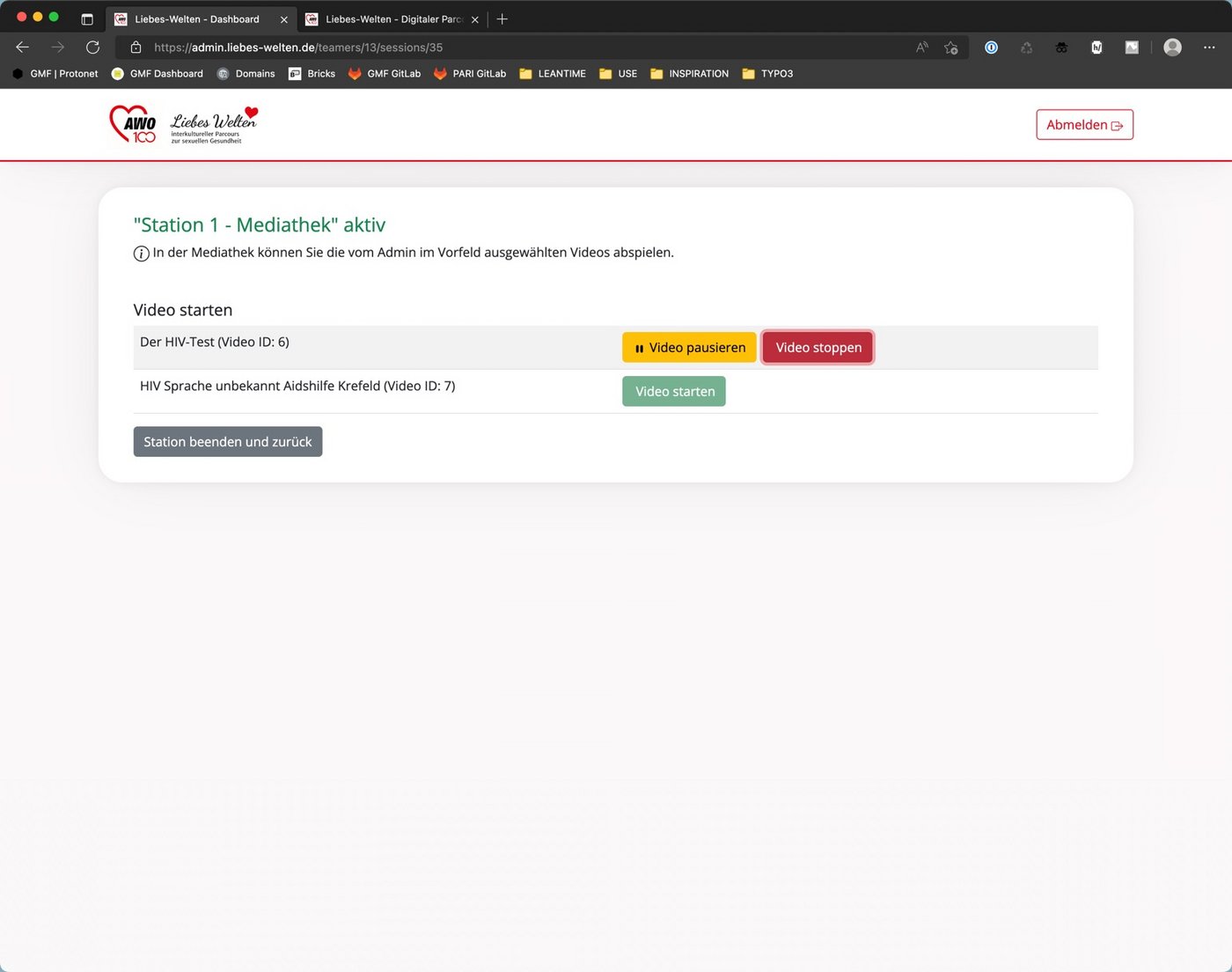 Nachdem alle Teilnehmenden dran waren und sich Ausgetauscht haben, klickst du auf den Button "beenden und zurück" und landest wieder in der Staionsübersicht.