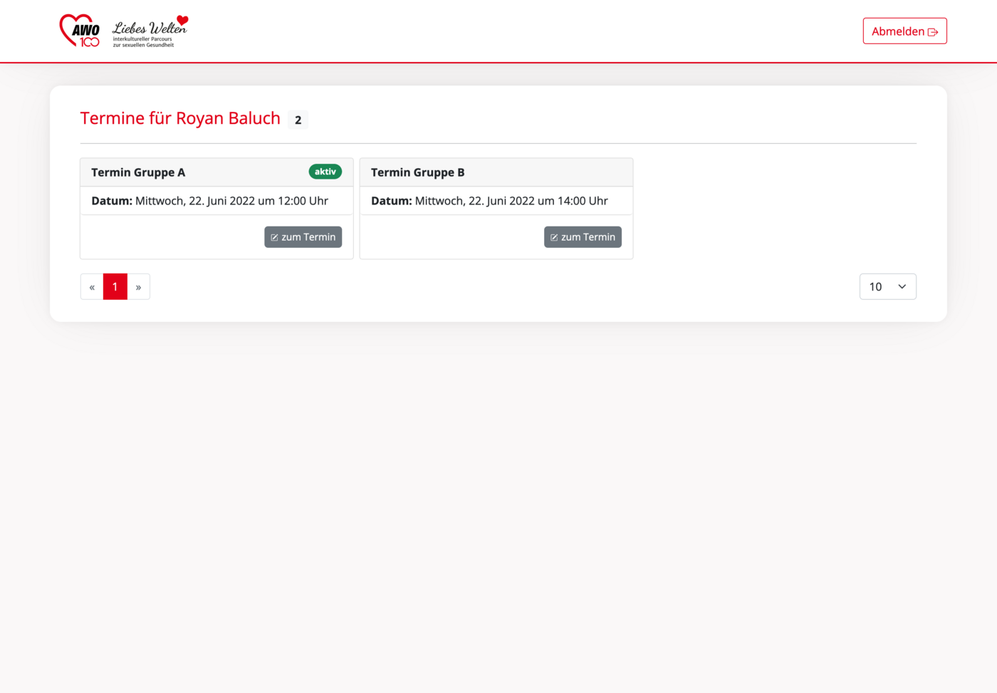 Im folgendem Schritt siehst du deine Terminübersicht, mit deinem vom Admin zugewiesenen Termin.